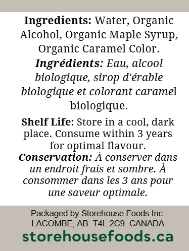 Ingredients: Water, Organic Alcohol, Organic Maple Syrup, Organic Caramel Color.