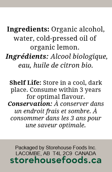 Ingredients: Organic alcohol, water, cold-pressed oil of organic lemon.