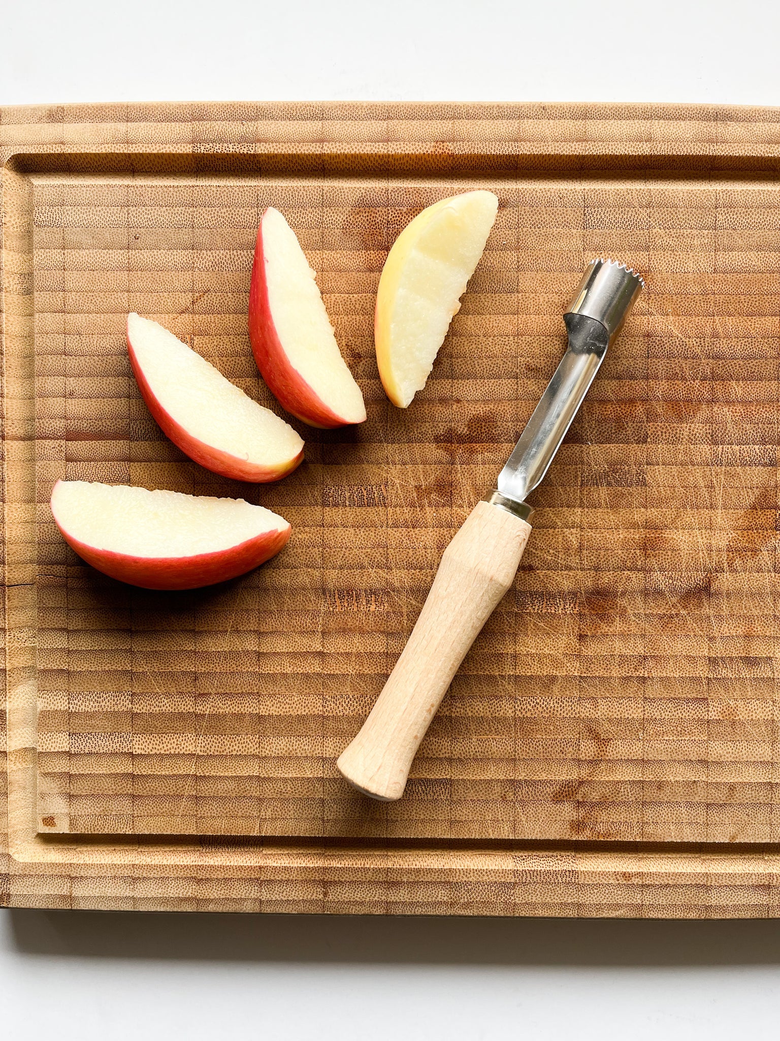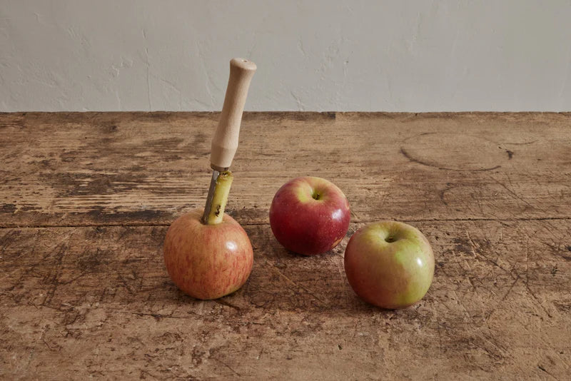 Handmade in Germany! This handcrafted wood Apple Corer safely removes apple and pear cores easily and quickly! A handy tool to have in the kitchen. With a simple twist and pull, apple cores come effortlessly free. Features a stainless steel coring blade and a beechwood handle. 6.5" long.