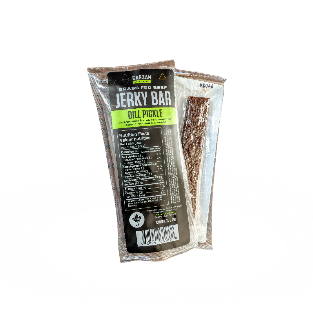 Fuel your day with a bold, tangy kick! Our Dill Pickle Jerky Bars are made with just a few clean, simple ingredients: grass-fed beef, sea salt, honey, and the perfect blend of dill and vinegar for that classic pickle flavour. Packed with protein and free from unnecessary fillers, they're a wholesome snack that tastes as good as it is for you.